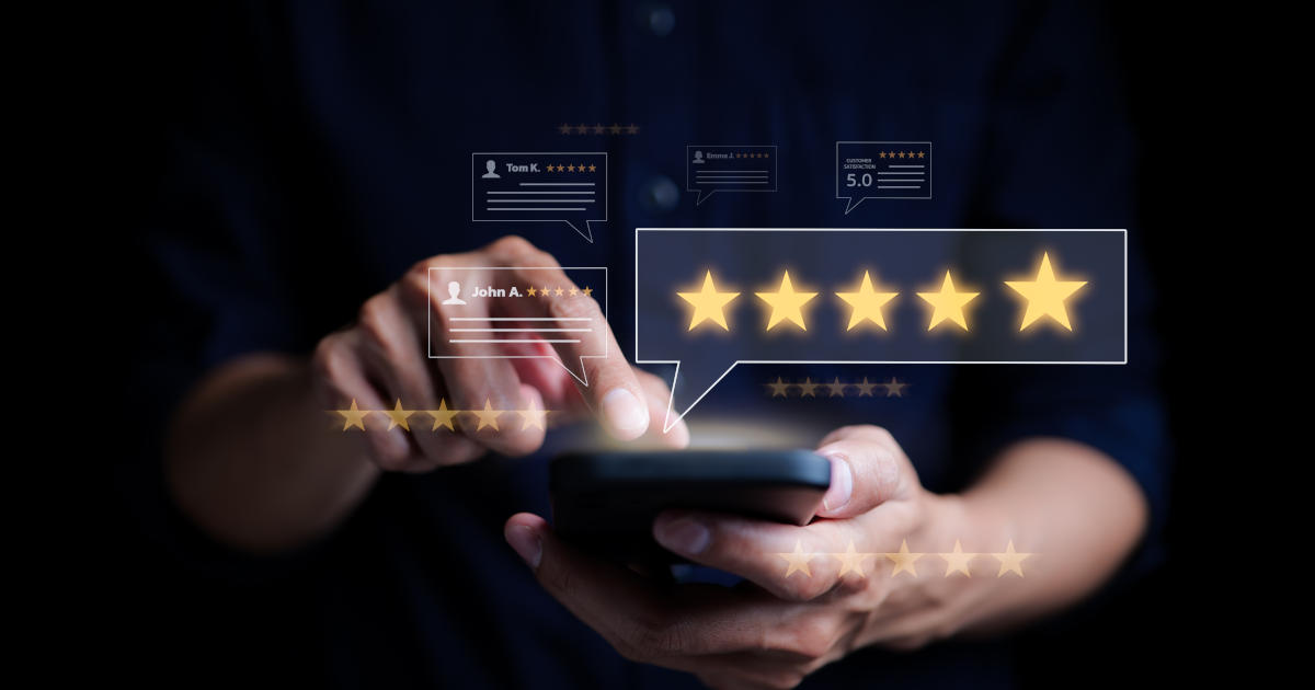 Customer review satisfaction feedback survey concept. User give rating to service excellent experience on mobile phone application, Client evaluate quality of service reputation ranking of business.